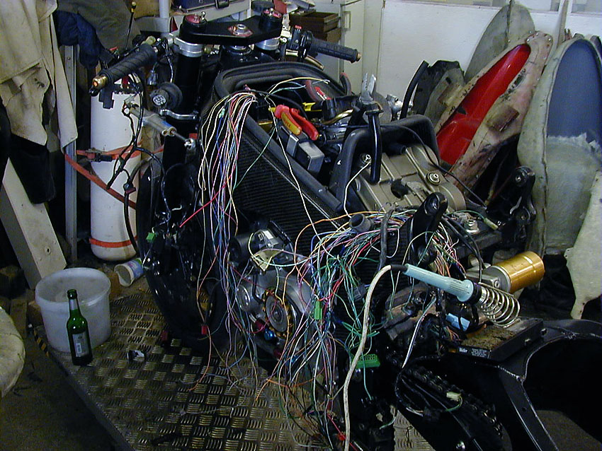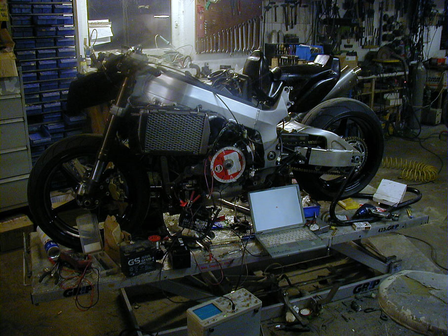 My buddy and me preparing his RC51 for track , with Motec .. and so on