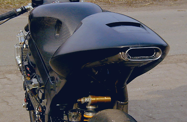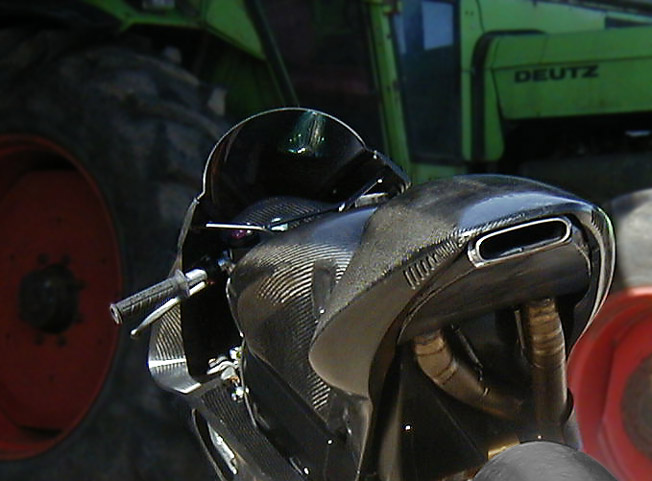 7.I do not fab this Exhaust from steel (that would be incredible heavy then) and I don't produce the Can in Aluminim,because the heat-duction is too high,so everywhere Titan. Additional the more-costs of Titan don't really Matter compared to the work behind to built such a System.So the costs for such a System are approx. 2700 -3000 €. And IF you want to go with the new designed underseat-Fueltank also,that one is 1900 €. A special Carbon-Tailsection therefore with Air -Intakes/Outlets and special reinforcements 600 € .